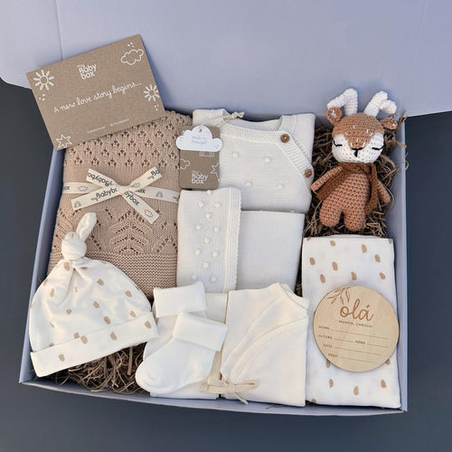 Nuestras cajas de primavera para bebés aportan frescura, colores suaves y piezas delicadas para acompañar a tu bebé durante sus primeros meses. Un regalo encantador, ideal para un baby shower o como anuncio de nacimiento.