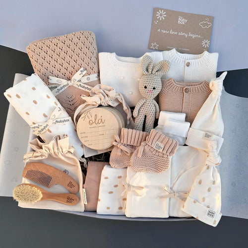 Descubre nuestras nuevas Cajas para Bebés , con productos novedosos y cuidadosamente seleccionados para sorprender y deleitar. Piezas prácticas y modernas diseñadas para acompañar cada etapa del desarrollo de tu bebé. El regalo perfecto para quienes buscan originalidad y calidad.